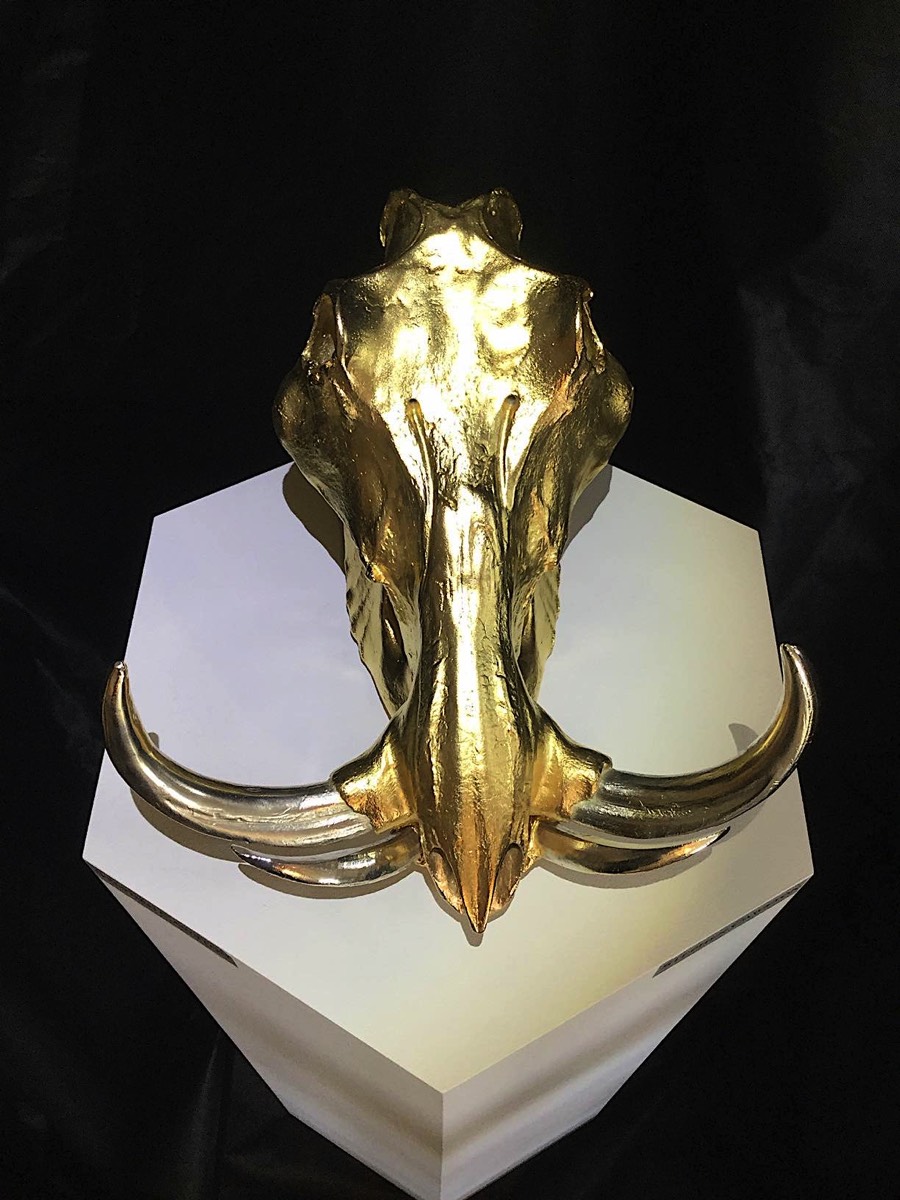 The Bronzes will have up to date contemporary patinas, these colours all coming from the mind of Stephen Cawston. The Male Bengal Tiger and Warthog Bronze seen here, have a Burgundy/Horse Chestnut patina, with stunning hues of light and dark and highly polished. The Teeth and Tusks will be the polished bronze.